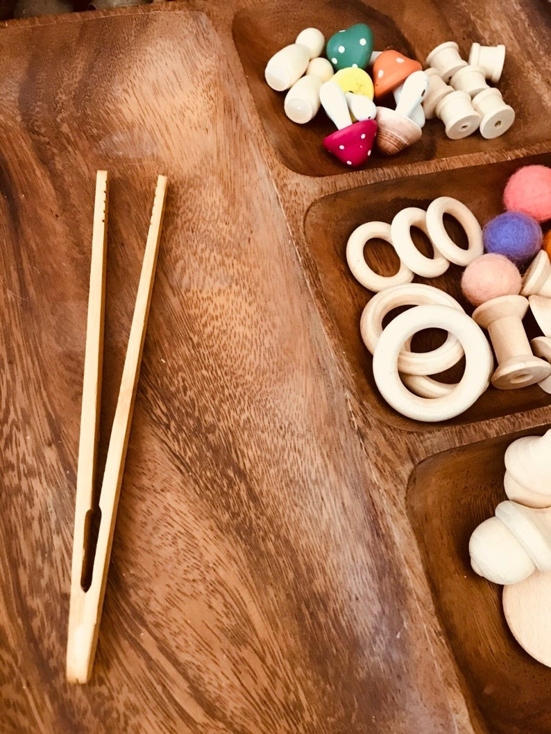 Your child will develop their all-important fine motor skills by squeezing, collecting and releasing items with these Baby wooden Tongs. These tongs can lift a mass of items, including small toys, felt balls, playdough, or anything else that is small and light enough for your child to lift. They will spend hours and hours playing while building their strength and hand-eye coordination.