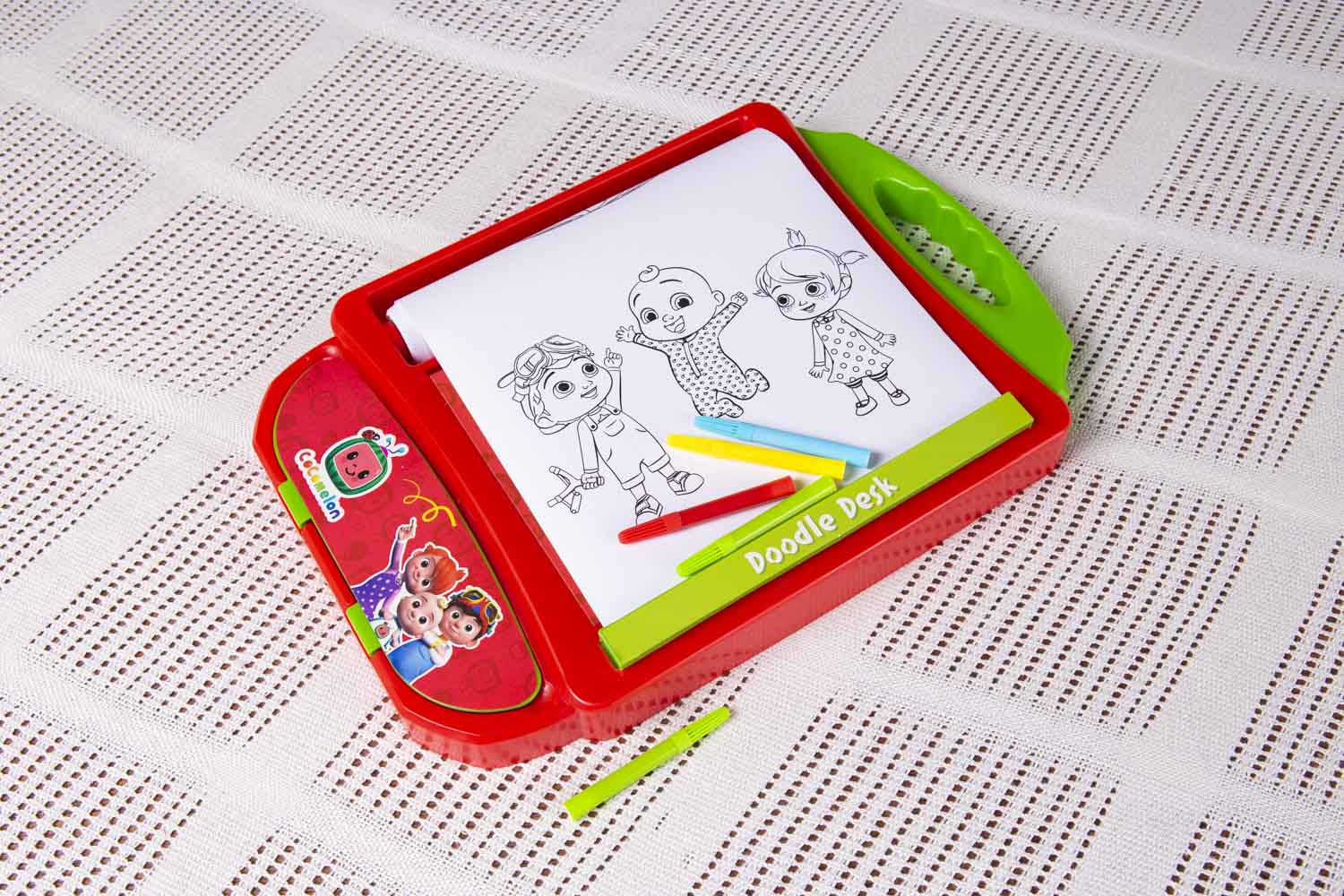 Cocomelon is hugely popular with little children. Their way of helping them learn about numbers, letters, animals, and the world around them through song has proven very popular with parents as well as the kids. With this Cocomelon Doodle Desk children can bring a bit more of that bright and fun Cocomelon style into the house. This Doodle Desk is a one-stop art studio for all their creative needs. It is nice and bright just like Cocomelon, but it gives them a dedicated space to be creative which is neat. It comes with all they need to get started and best of all, it has a roll of Cocomelon themed drawing paper. This Cocomelon Doodle Desk is also a great way for a child to develop their fine motor skills.