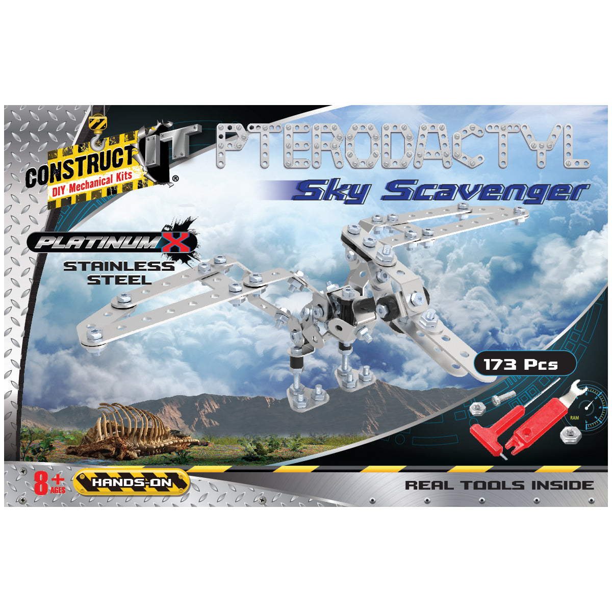 The Platinum X range from Construct It uses stainless steel parts which give each set a real hefty and solid feel. Children will love using the real tools to screw and secure each stainless steel into place as they bring to life this awesome pterodactyl. Construct It sets are not just fun, they also teach children new skills. As they are bringing to life this pterodactyl, they will be learning engineering skills and principles of STEM learning. There is far more to Construct It than just putting one block on top of another like other construction-based sets. Construct It make sure that children know exactly what they are doing with the easy-to-follow instructions that break down each step. At 173 pieces, this is a great set for a child 8 years+.