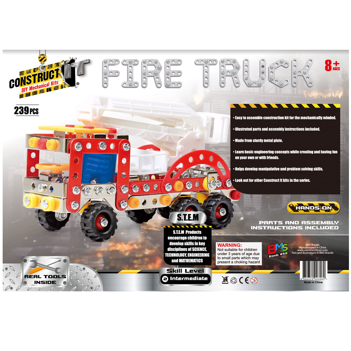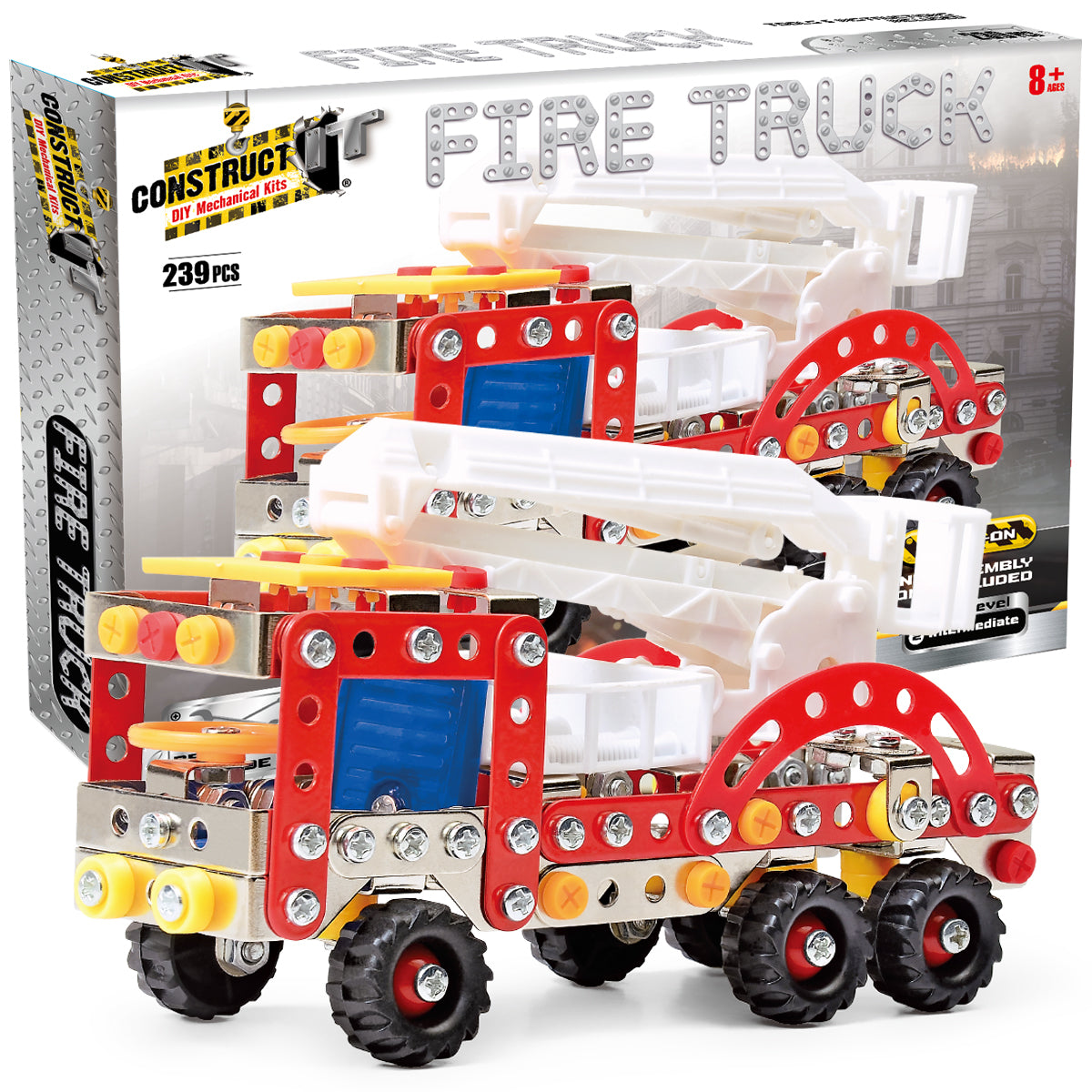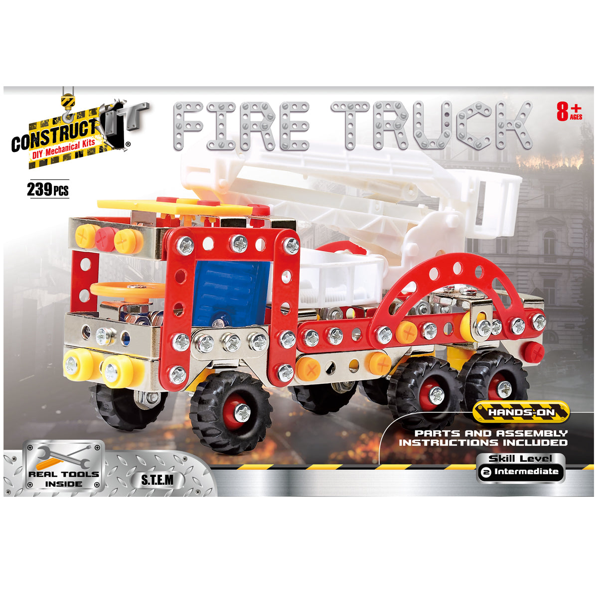 The 239 Piece Fire Truck kit is sure to be a ton of fun! It is easy to assemble for the mechanically minded and includes illustrated instructions. Learn basic engineering concepts while creating and having fun on your own or with friends. Helps develop problem-solving skills while acquiring STEM learning principles. Suitable for children aged 8 years+.