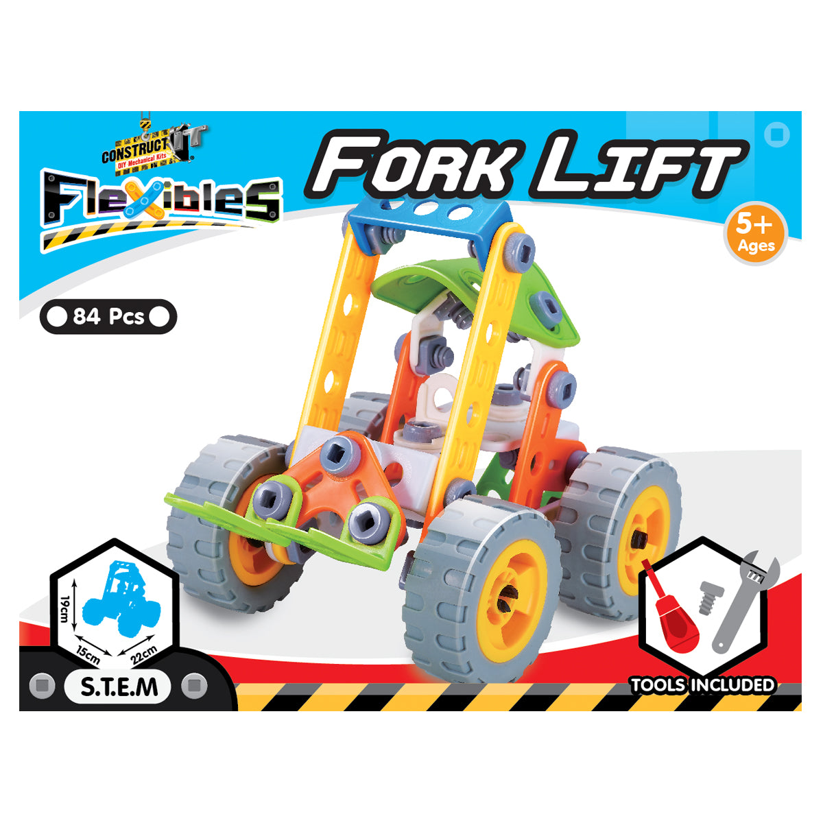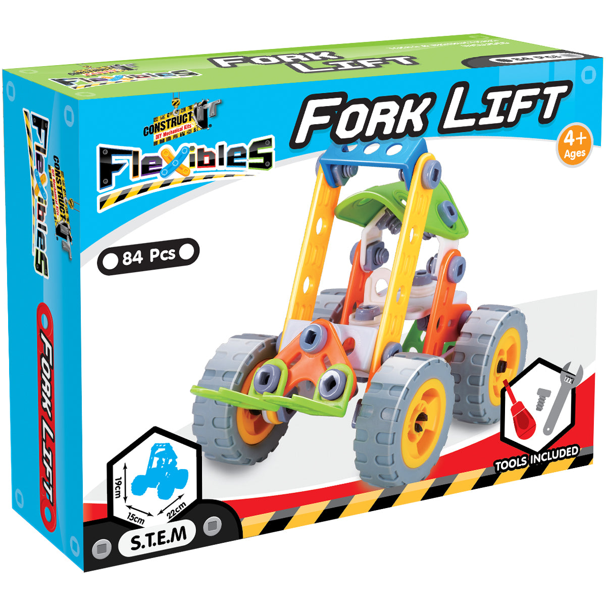 The Construct It Flexibles ForkLift is a fun vehicle that children can build with their own two hands. Rather than just stacking a bunch of blocks together, this is all about using tools to create. The tools and the pieces to make the Fork Lift are flexible and not rough so they are perfect and safe for younger children. The instructions are nice and easy for them to follow without frustration. The Flexibles range is themed around the principles of STEM learning, this ensures that children will be having a fun while getting new mental and physical skills that can help them develop while playing. Suitable for children 5 years+