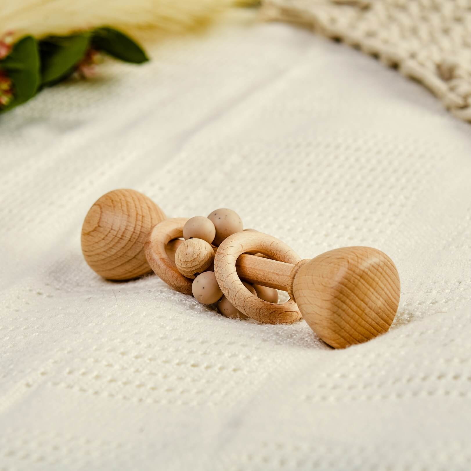 2. Beech wooden rattle (helps toddlers with motor skills)