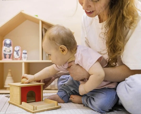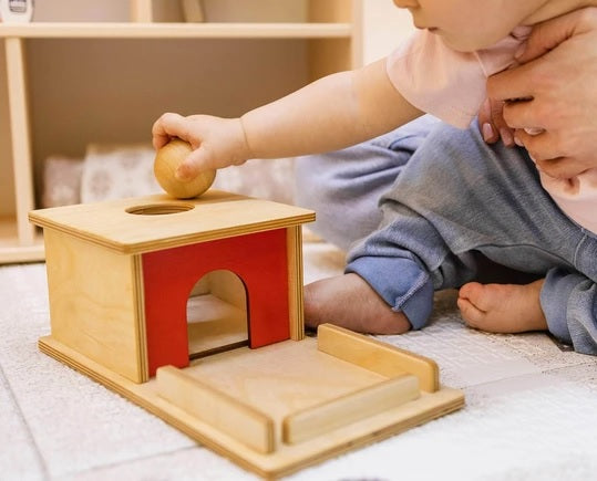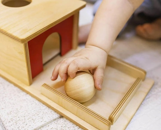 As your child's mind continues to learn and grow, they will start to develop object permanence and understand that objects still exist, even if they aren't visible. Using this Montessori Ball Drop Permanence Box will challenge your child's strategic thinking skills while continuing to develop their fine motor skills. Watch as your little one drops the ball into the box, understands that it will go missing and then anticipates its reappearance at the box's base.