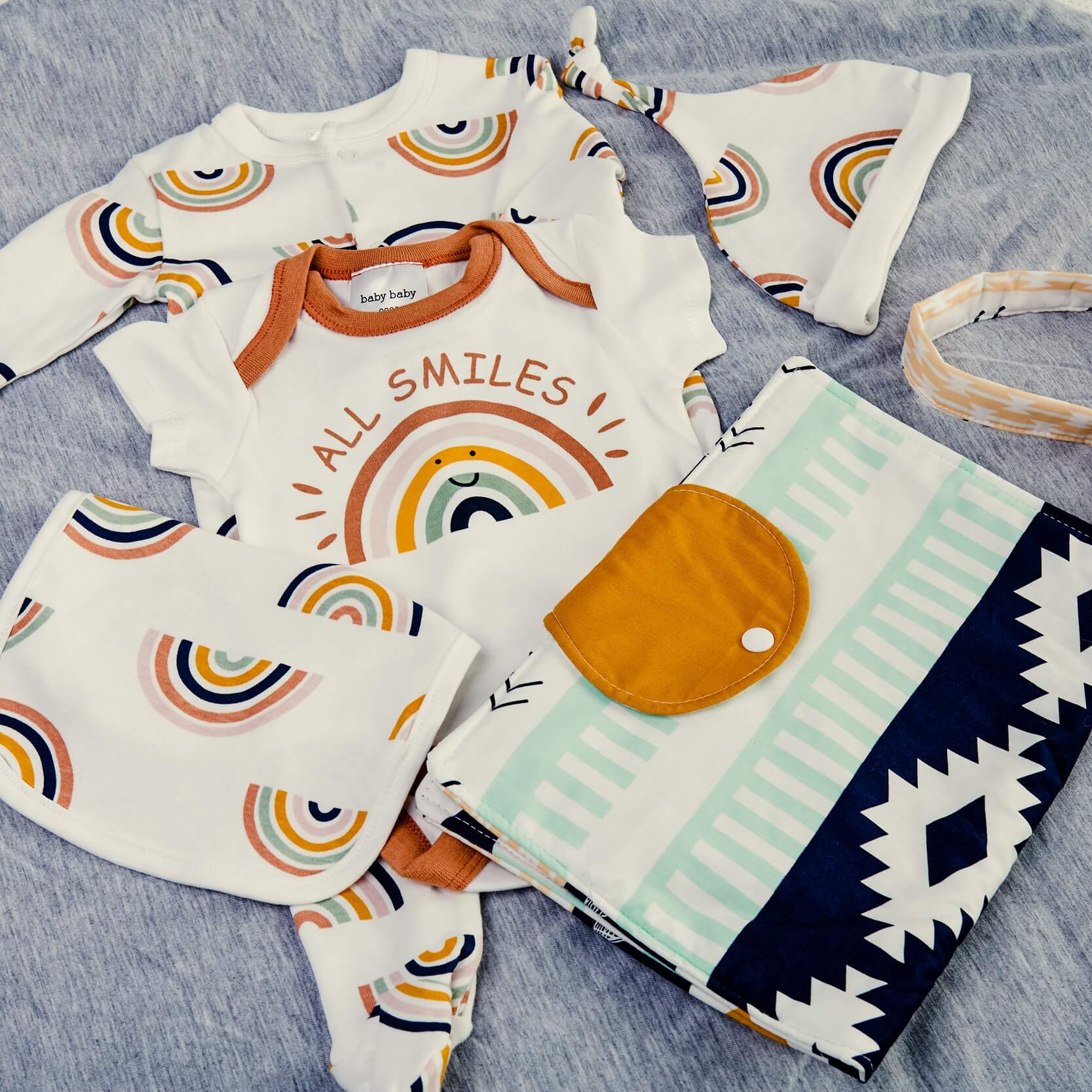This starter pack has something for both mum and bub. Perfect as a new mothers gift, baby shower or newborn baby gift. The clothing set is unisex and best for any gender. The nappy wallet is handmade in Australia with designer fabric. This pack comes with: