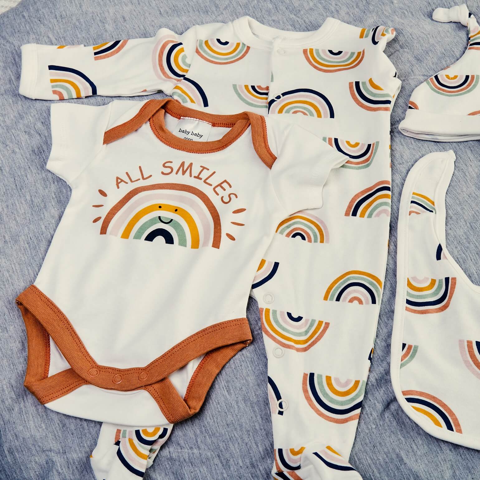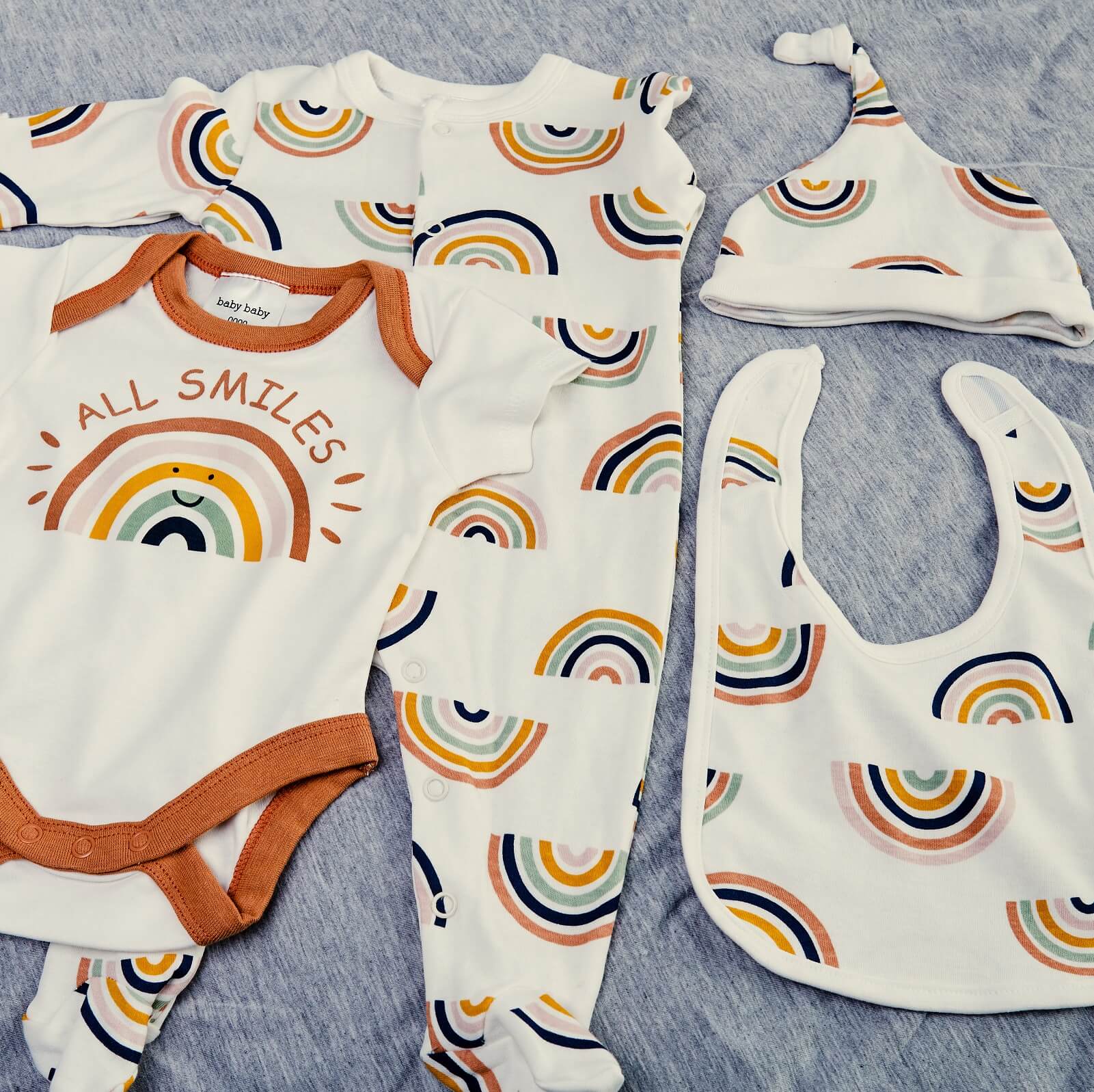 1. 4pc cotton newborn starter pack (beanie, bib, bodysuit, onsie) (Prints may change due to availability - available in different prints and age. Type on the comment section while checking out for sizes other than newborn)