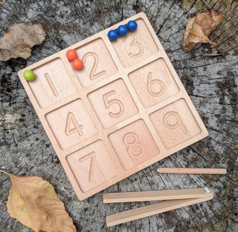 If your little one is ready to start developing their writing skills, this Number Tracing Tablet is perfect. The numbers of the tray are engraved into the board, meaning your little one can use the wooden pen to practice their pencil skills. This will help to refine the much-needed strength in their fingers, preparing them for starting school.