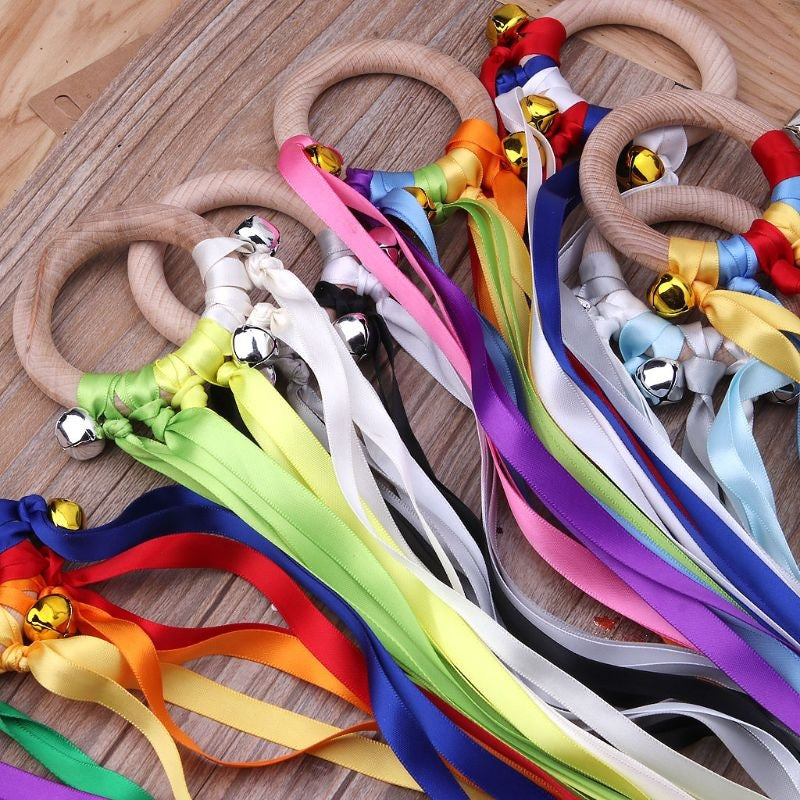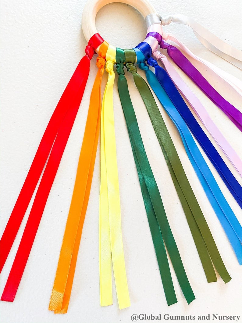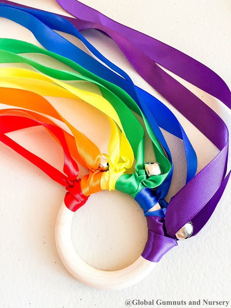 Teach your child about the beauty of creating music and sounds with these Rainbow Musical Chime comes with 3 bells. As your child shakes the chime back and forward, the wood produces a beautiful, hollow tune that can keep your little one entertained for hours on end. As they will need to grip the chime tightly to keep them from falling when shaken, your child will develop their fine motor and movement skills, all while discovering how they can make their own music. The ribbons also help with sensory play. NOT suitable as a teether!