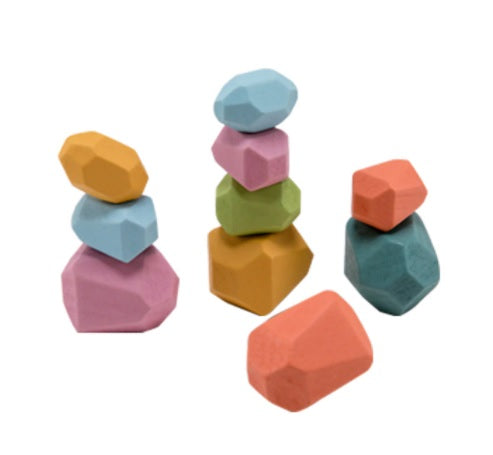Rainbow Wooden Balancing Pebbles - 10pcs