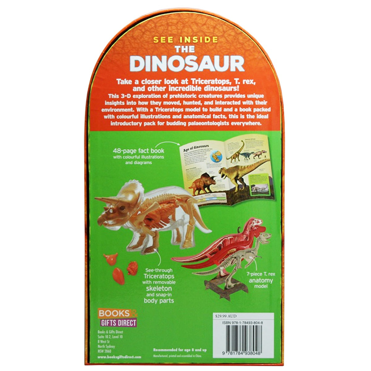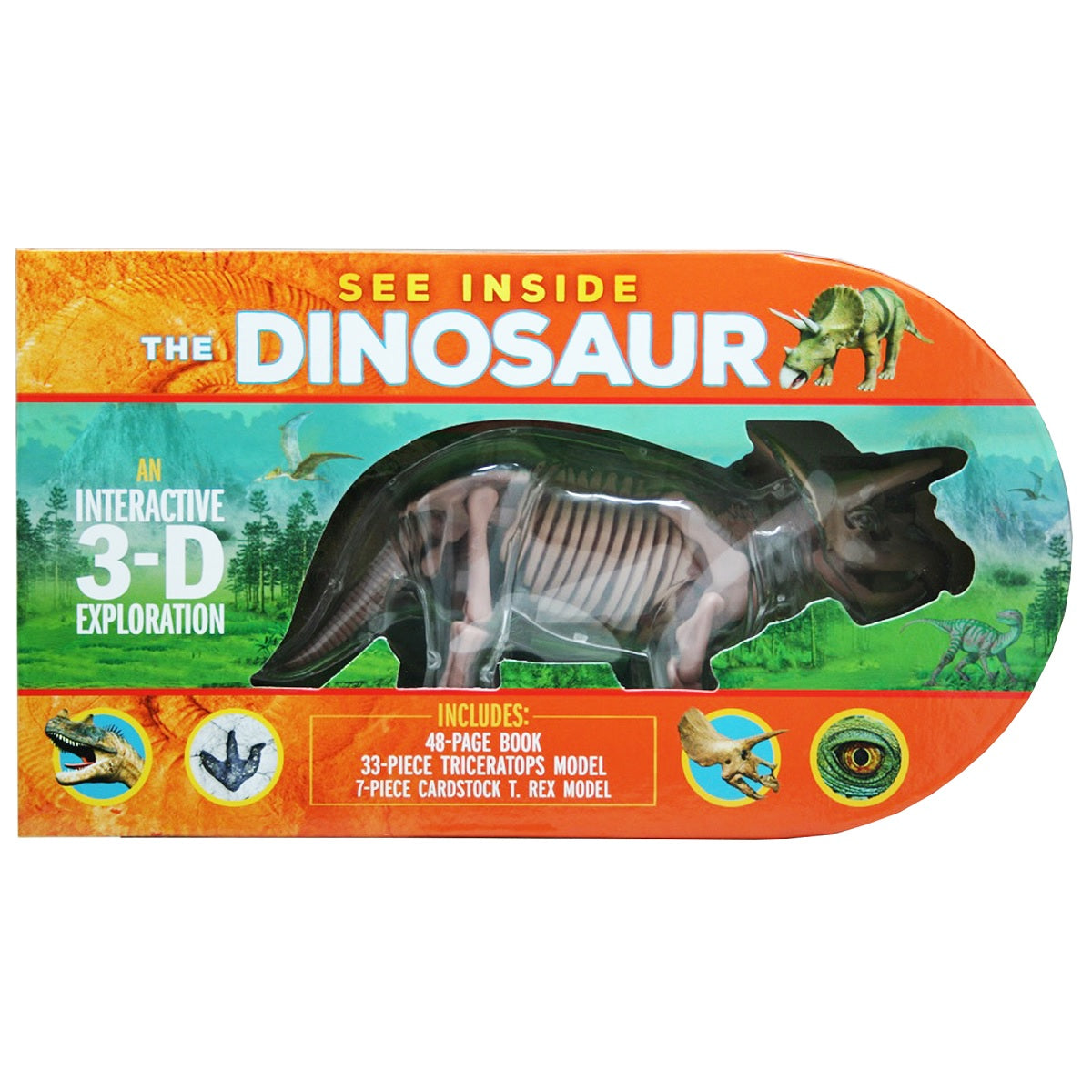 Examine the fascinating body of a Triceratops, one layer at a time, with See Inside The Dinosaur. The innovative and interactive 3-D format allows kids to discover the inner workings of a dinosaur's body with a transparent model that includes removable bones and organs. The detailed text and full-colour illustrations in the 48-page book provide readers with an up-close look at how different types of dinosaurs survived in the prehistoric world. Also included is a stand-up cardboard model that provides the reader with a complete overview of a dinosaur's body.