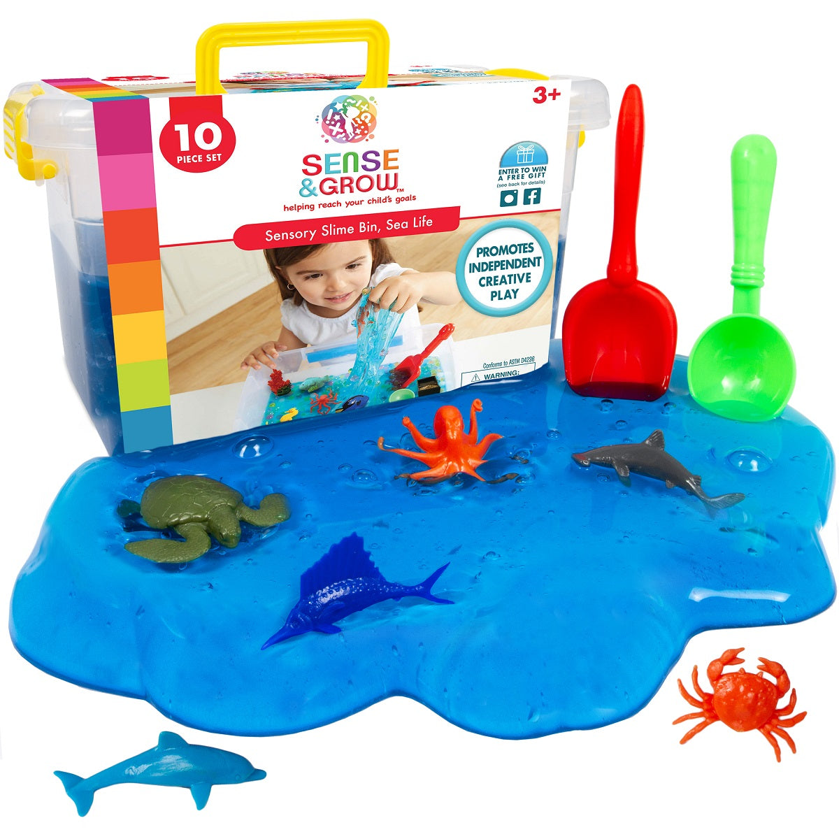 The good people at Sense & Grow know that playtime can also be an opportunity for children to grow. The Sense & Grow Sensory Bin - Sea Life is a great way for children to have fun while learning about their senses. The set is all about the magic and wonders of the ocean and inside it includes a large pack of blue slime. As this set is based on the wonders of the sea, it also comes with some sea critters. Alongside the included spade and scoop, there is a dolphin, hammerhead shark, crab, octopus, and sea turtle.