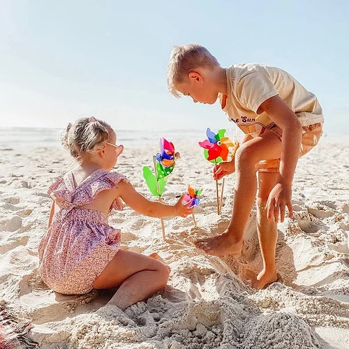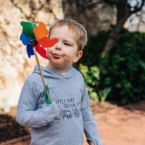 A windy day can dampen a lot of outdoor plans but is perfect for these Premium Windmills. Featuring all colours of the rainbow, your little one will be mesmerised as they watch the colours spin and blend together in the wind. But be careful, they will need to grip the stem of the windmill tightly, especially when it's windy, to keep it from blowing away. This toy can be stored in a toy box or planted in the garden to keep bugs and birds away from plants. Each windmill measures 16 cm tall.