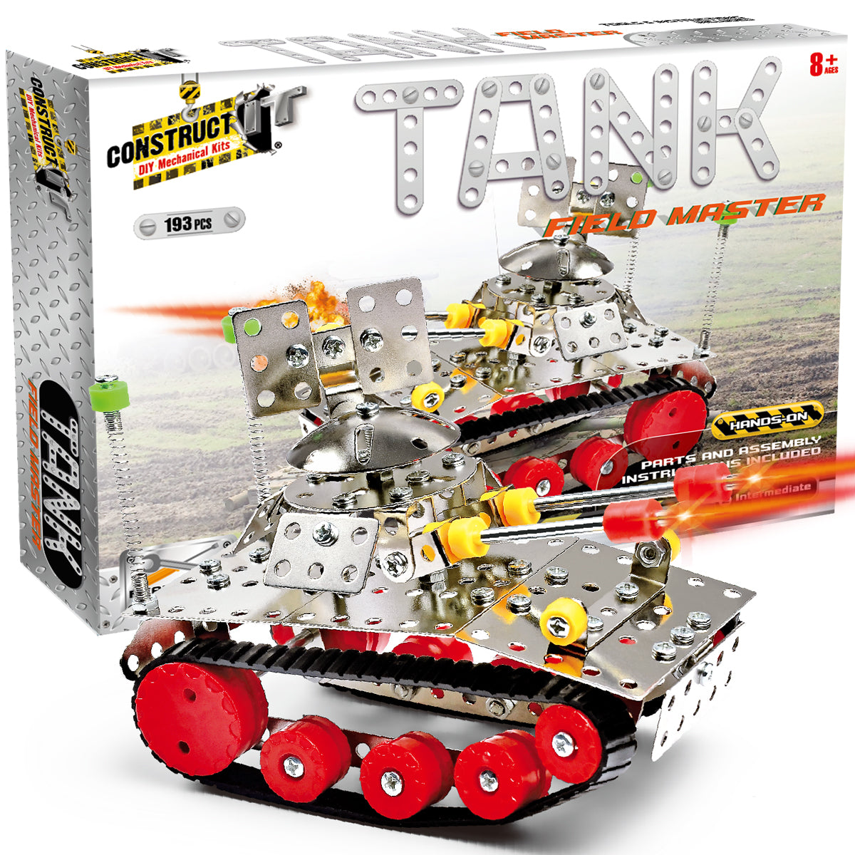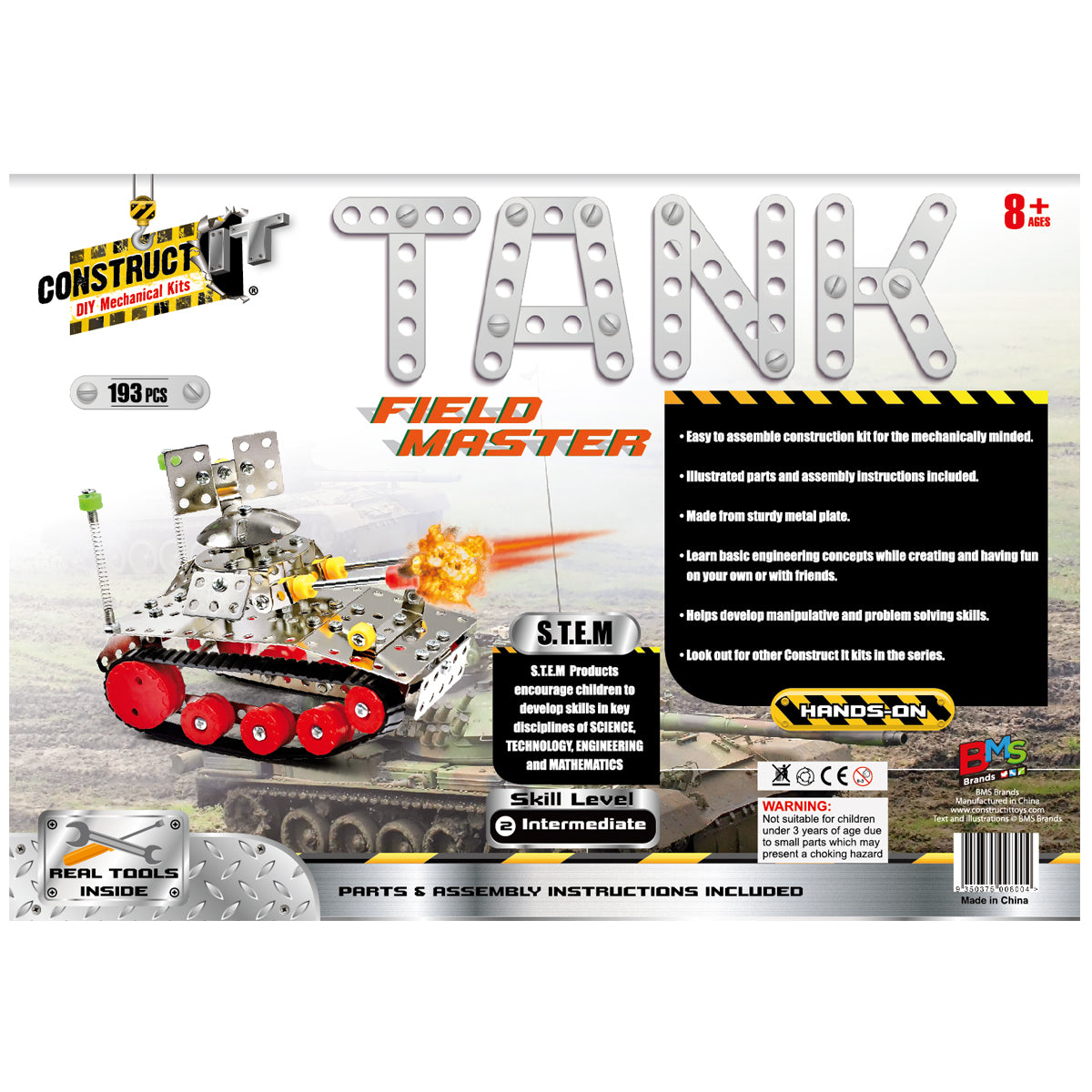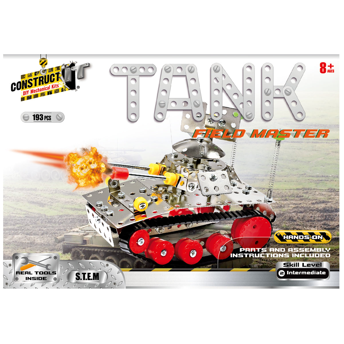 Get ready for action and mayhem with the high-powered Construct It! Tank Field Master set. Children will have lots of fun building this awesome tank and then taking it on all kinds of secret missions around the house. This Construct-It Tank Field Master set allows children to create a cool tank that has actual treads to roam around the house. As they are building the tank, they will be learning the basics of engineering and get better understanding of STEM learning! Children use real tools to screw pieces into place so they will have a real sense of accomplishment once they are done. Each Construct It set comes with detailed instructions that break down each step in an easy-to-follow way. This Tank Field Master has 193 pieces and suitable for children aged 8 Years+.