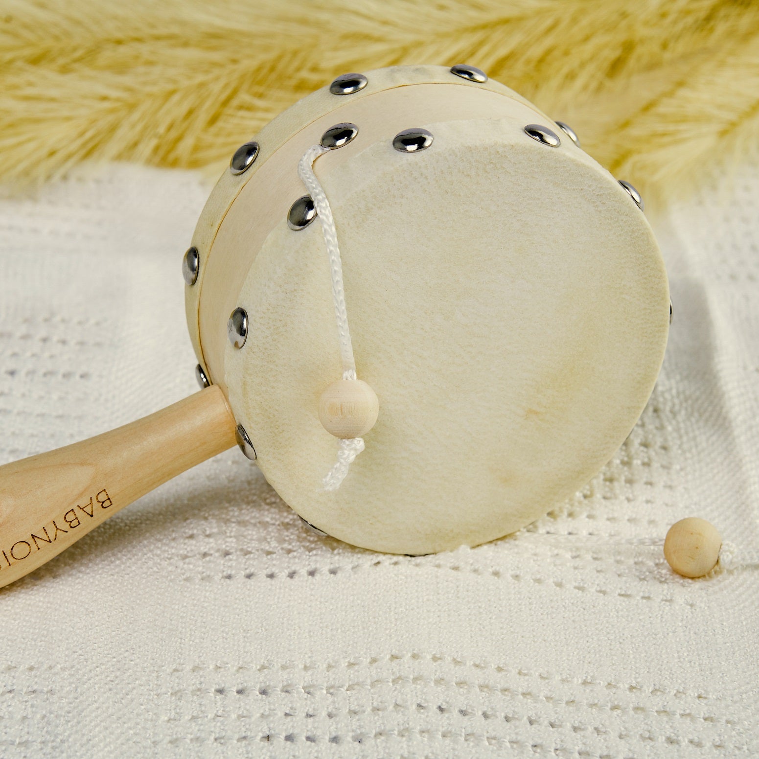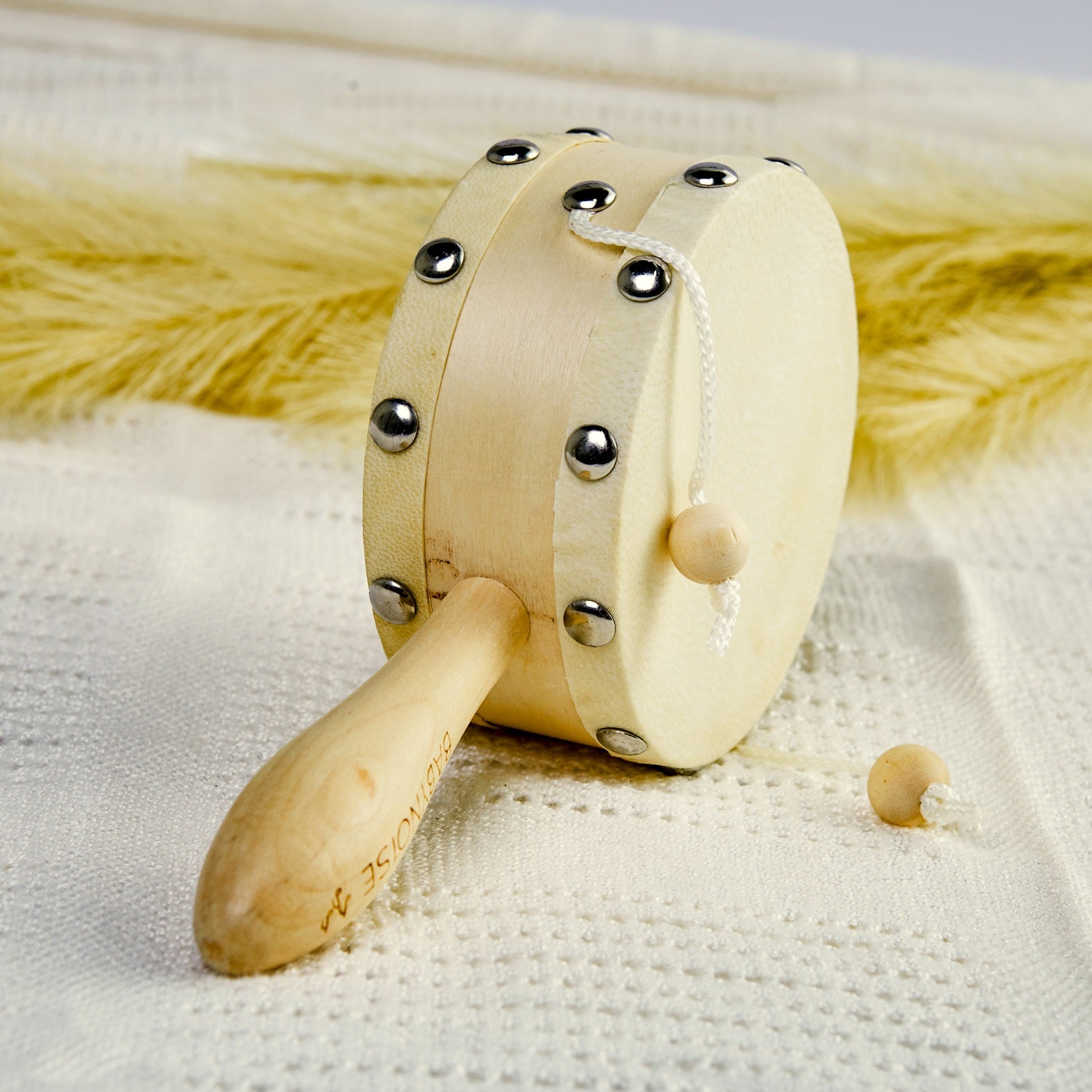 Spin it with one hand, or two. When the baby-safe beads hit either side of the drum, they will produce a beautiful sound that will keep your little one entertained for hours. This instrument also fosters the development of eye-hand coordination and the understanding of cause and effect.