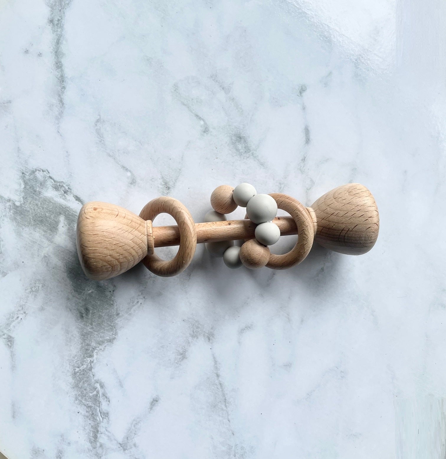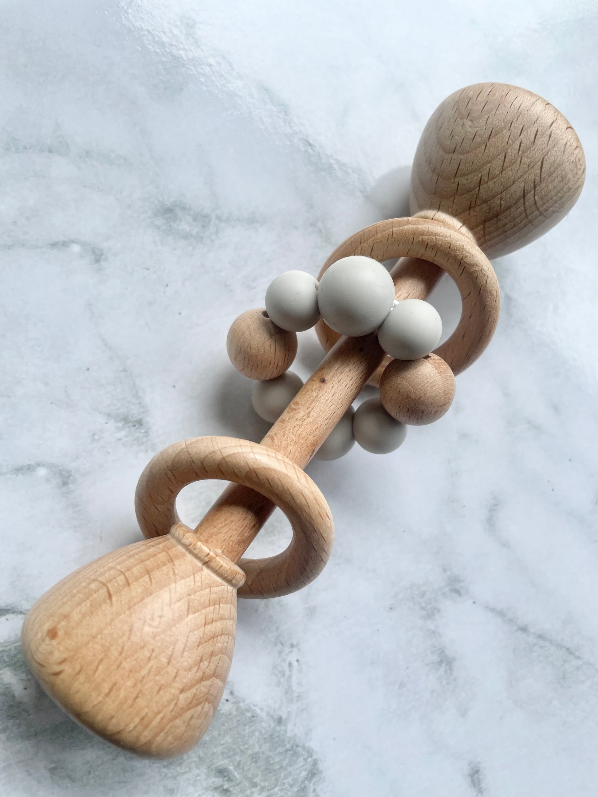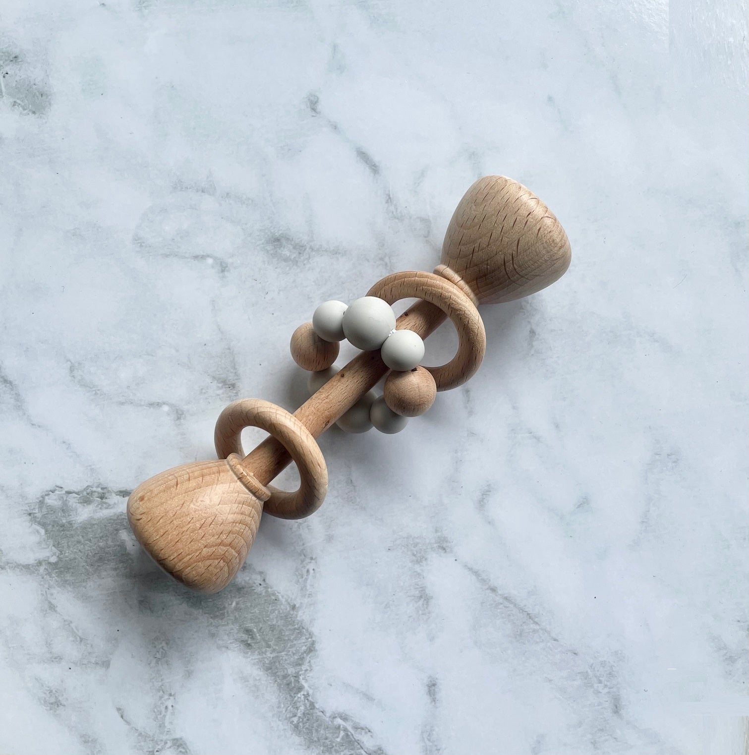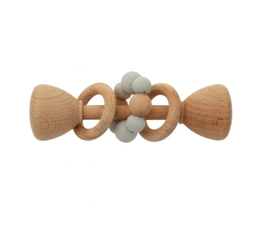The wood and silicon bead rings on the ring rattle will help increase your baby's sensory skills and will help to develop object permanence. They are one of the first toys that a baby can manipulate independently, making them a great milestone in your little one's fine motor skills development.