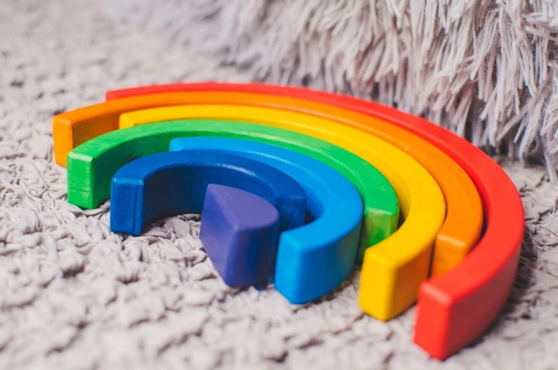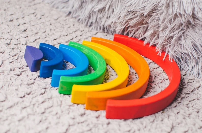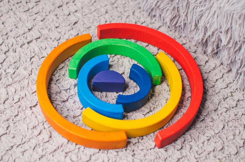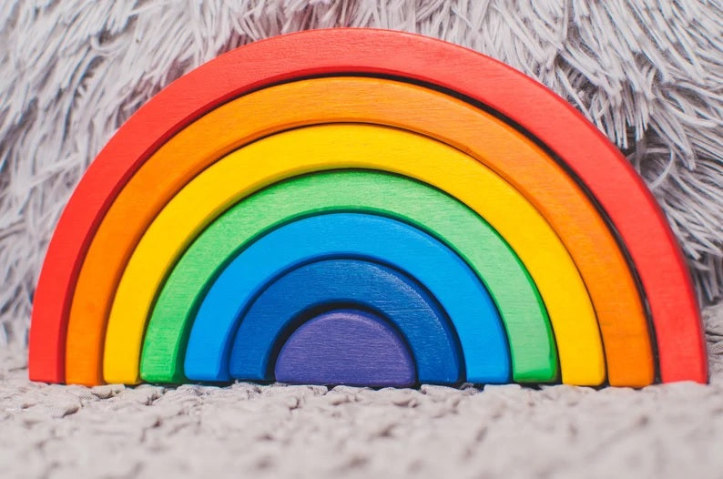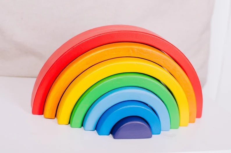 Help to develop your little one's logical thinking skills with this bright Rainbow Wooden Stacking Toy. Your child will need to grip each piece of the rainbow tightly and stack it in the correct order to complete the puzzle. Through repetitive play, this will build their strength, hand-eye coordination and logical reasoning. The puzzle also looks beautiful as a decoration in your little one's nursery when they aren't playing.