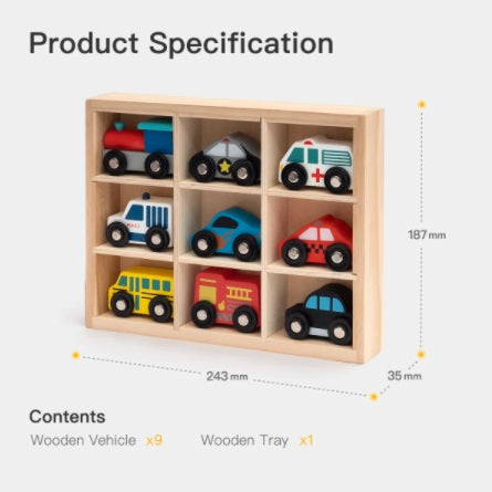 Zoom - Wooden Toy Car Set with Wooden Tray 9pcs